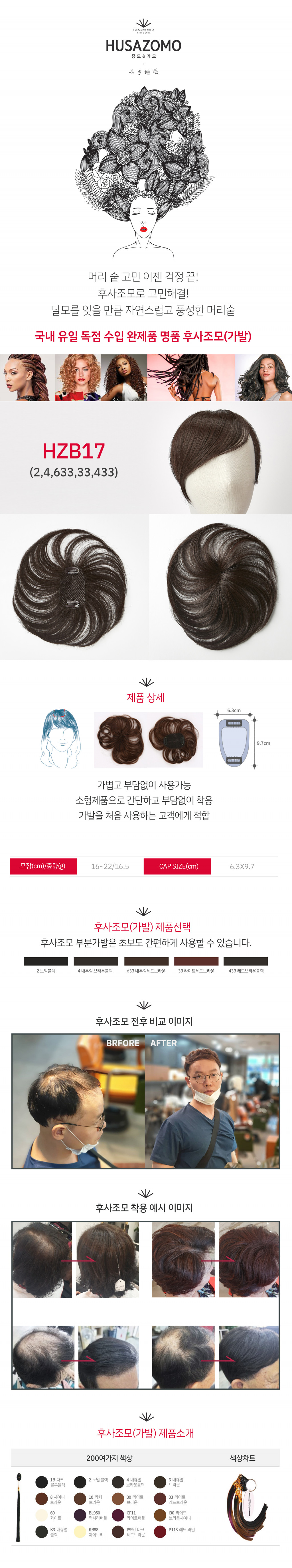 가볍고 부담없이 사용가능 소형제품으로 간단하고 부담없이 착용 가발을 처음 사용하는 고객에게 적합